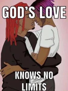 This helps to fix the issue of anti gay comedy. It features popular musicians Playboi Carti and Lil Uzi Vert in a loving embrace with the text God’s love knows no limits. This flips the usual religious rhetoric of anti homosexuality on it’s head by spreading the message that God loves all. I think this does justice in helping unravel the previous meme’s harmful message.