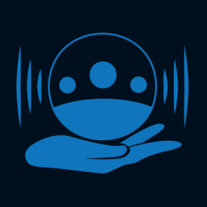 Inside a globe is a community speaking out, held high by the attentive touch of a motherly hand.