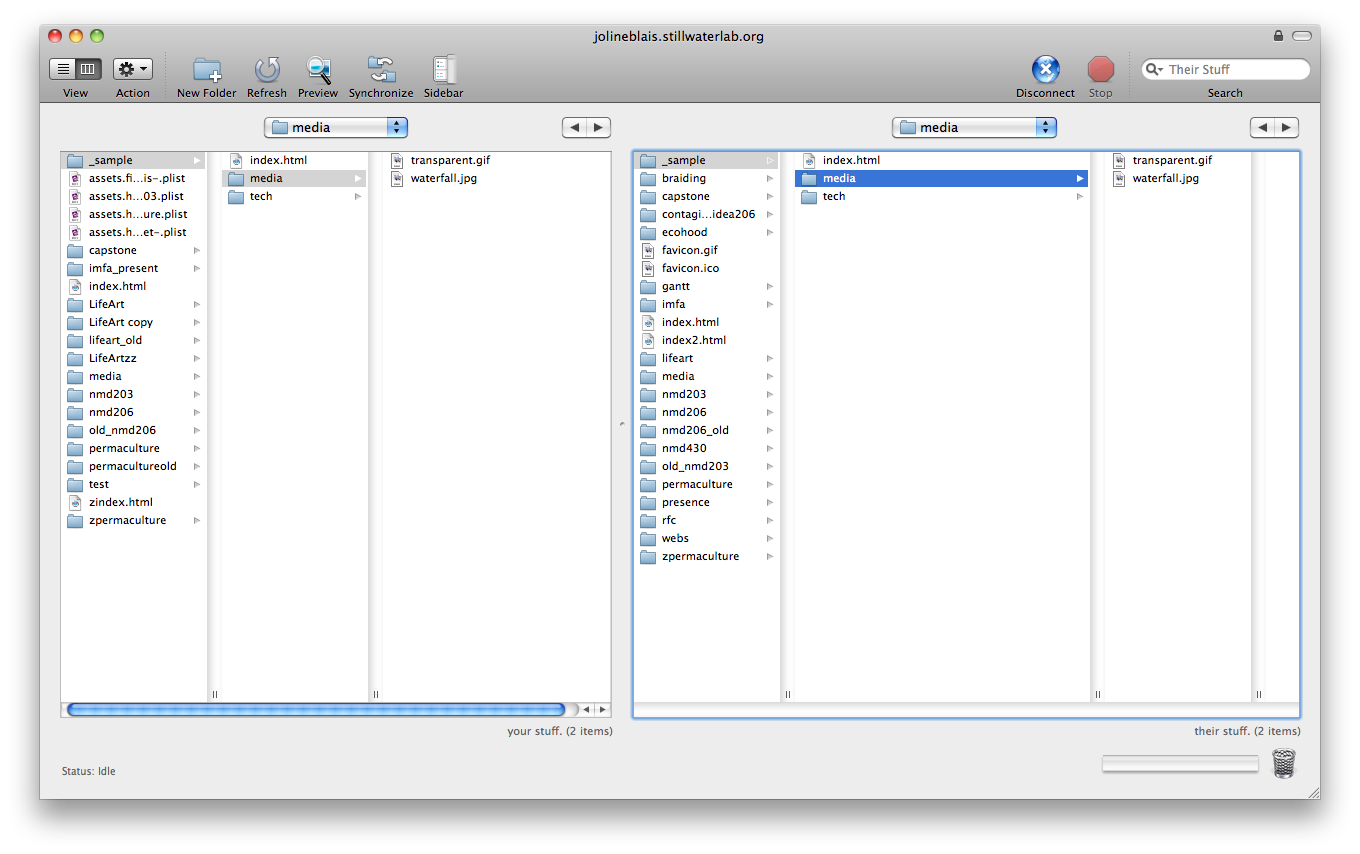 Create 3 folders: one called "nmd203" or "nmd206" (use lowercase, and NOSPACES for all html files and folders or browsers may not find your files); within that folder create two other folders called "media" and "tech". See this sitelayout.png
