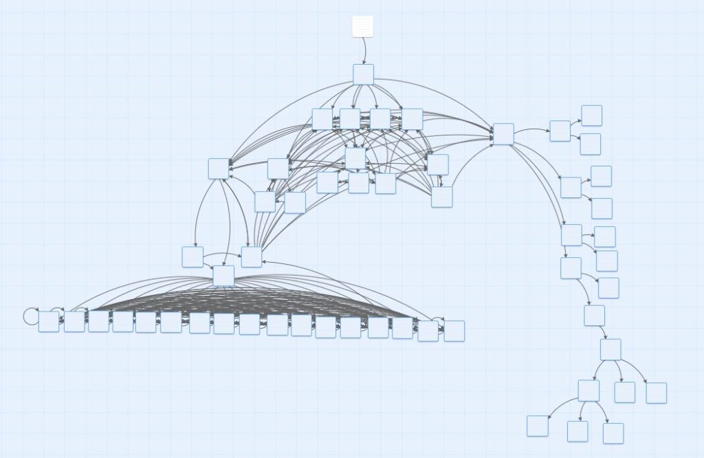 - The central part of the map is the main directory for the user to investigate as much as they need to in order to solve the mystery. The bottom left is a puzzle I put in. The right side is a series of choices the player must make as they attempt to solve the mystery. Any wrong choice results in an end state. The success state is one of the bottom three on the right.