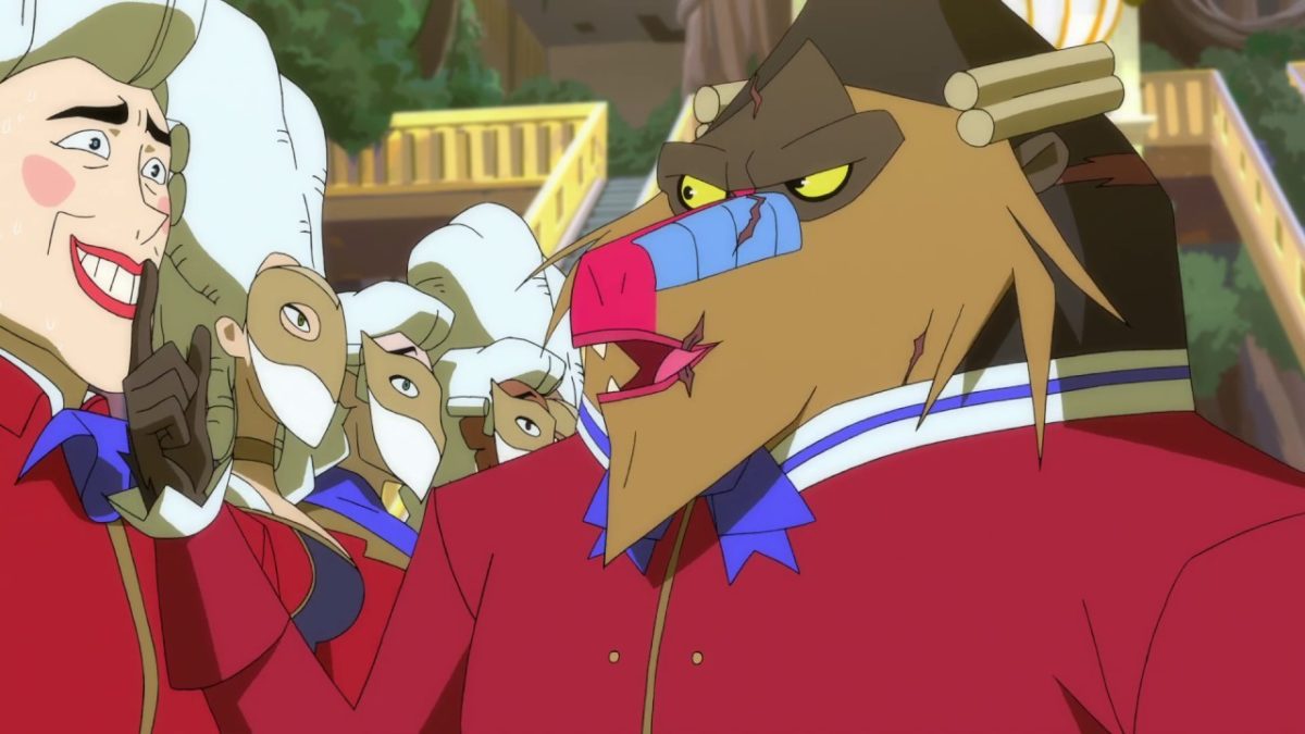 The Burrow is an underground hideaway for the remnants of humanity after an at this point unnamed disaster ended the world above. The people here live in relative peace, afraid of the surface and having no idea that other humans, like Kipo’s latest friends and traveling companions Wolf and Benson, and at the beginning of the show an earthquake shakes this peaceful bubble to the point of popping. Part way through the show it is revealed that this was not an earthquake, but an attack by it’s main villain, Scarlamagne, a baboon intent on enslaving humanity “Just as they did to us” back when they ruled the world.