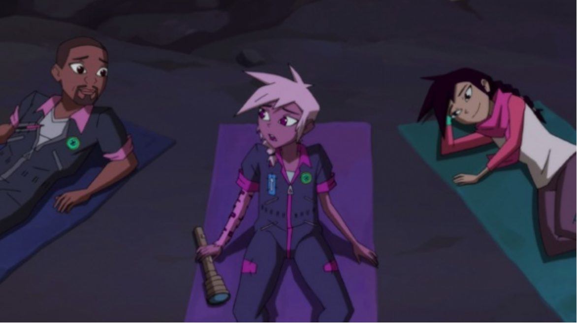 Super strength, night vision, pinkish fur, and purple jaguar eyes, new aberrant traits in Kipo began to reveal themselves as their adventure, a trip to the second back-up Burrow for humans after their first was destroyed at the show’s beginning. These changes scare her, the growing implication that she isn’t totally human, is half mutant, starts becoming harder and harder to ignore.