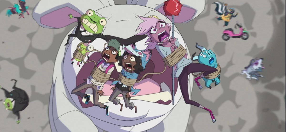 It is here that Kipo’s goal, returning to the Burrow and getting back to her old life, becomes impossible. The Burrow has been breached a final time and the lord of a new age is at their doorstep, and once again the strange changes happening to her body rear up in full force, and we are treated to one of the most surreal transformation sequences I’ve ever seen: