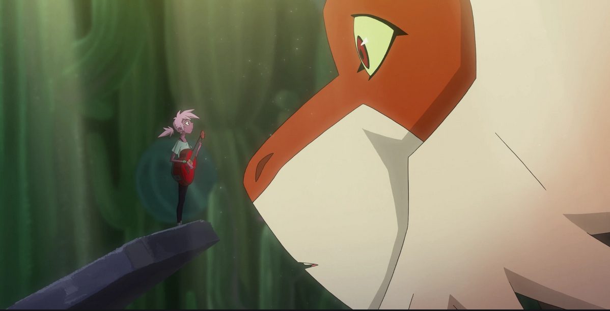 Now throughout the story songs have been used to punctuate Kipo’s growth. Be it against rowdy Cats, Snakes, or Giant Apes, Kipo has used music to show she isn’t afraid of what’s before her, that these challenges are things she can connect to and understand, just as in flashbacks her father uses magic to teach and connect to her.